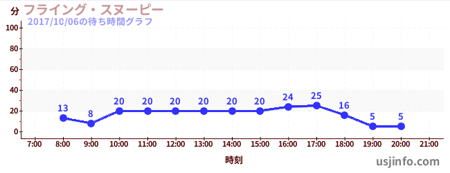 • フライング・スヌーピー$B$N(B2017年10月06日の待ち時間