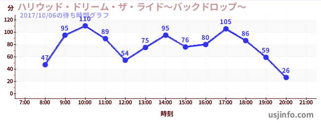 • ハリウッド・ドリーム・ザ・ライド〜バックドロップ〜$B$N(B2017年10月06日の待ち時間