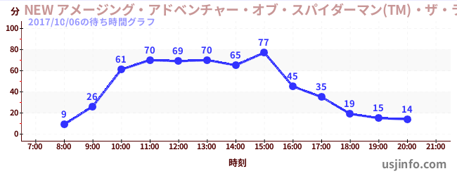• NEW アメージング・アドベンチャー・オブ・スパイダーマン(TM)・ザ・ライド 4K3D$B$N(B2017年10月06日の待ち時間