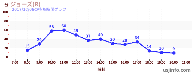• ジョーズ(R)$B$N(B2017年10月06日の待ち時間