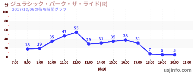 • ジュラシック・パーク・ザ・ライド(R)$B$N(B2017年10月06日の待ち時間