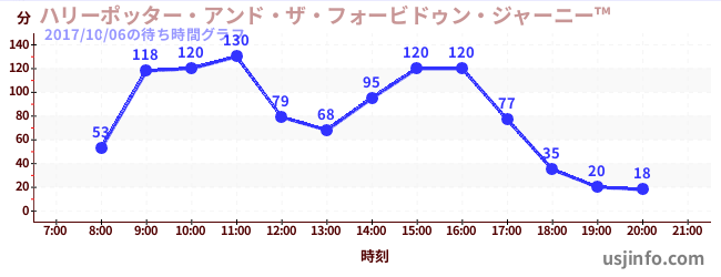 • ハリーポッター・アンド・ザ・フォービドゥン・ジャーニー™$B$N(B2017年10月06日の待ち時間