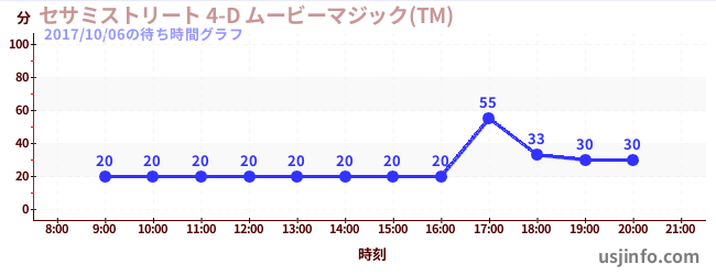 • セサミストリート 4-D ムービーマジック(TM)$B$N(B2017年10月06日の待ち時間