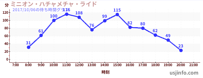 • ミニオン・ハチャメチャ・ライド$B$N(B2017年10月06日の待ち時間