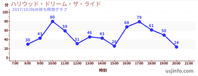 • ハリウッド・ドリーム・ザ・ライド$B$N(B2017年10月06日の待ち時間