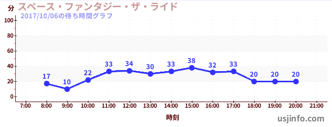 • スペース・ファンタジー・ザ・ライド$B$N(B2017年10月06日の待ち時間