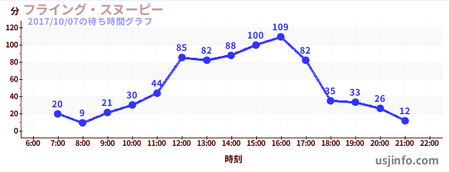 • フライング・スヌーピー$B$N(B2017年10月07日の待ち時間