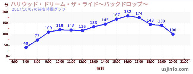 • ハリウッド・ドリーム・ザ・ライド〜バックドロップ〜$B$N(B2017年10月07日の待ち時間