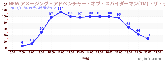 • NEW アメージング・アドベンチャー・オブ・スパイダーマン(TM)・ザ・ライド 4K3D$B$N(B2017年10月07日の待ち時間