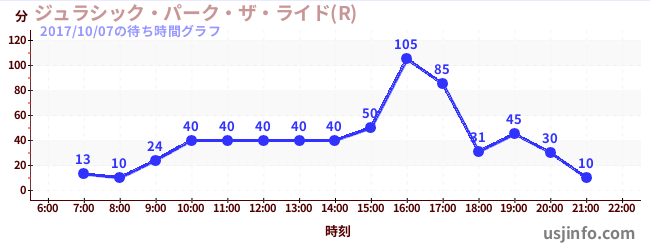 • ジュラシック・パーク・ザ・ライド(R)$B$N(B2017年10月07日の待ち時間
