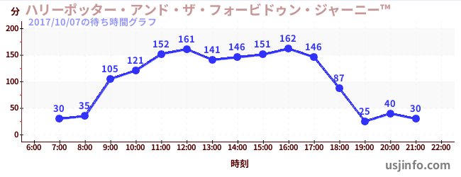 • ハリーポッター・アンド・ザ・フォービドゥン・ジャーニー™$B$N(B2017年10月07日の待ち時間
