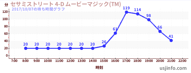 • セサミストリート 4-D ムービーマジック(TM)$B$N(B2017年10月07日の待ち時間