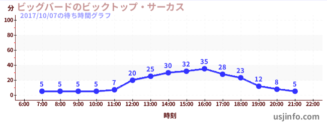 • ビッグバードのビックトップ・サーカス$B$N(B2017年10月07日の待ち時間
