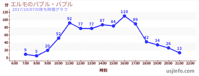 • エルモのバブル・バブル$B$N(B2017年10月07日の待ち時間