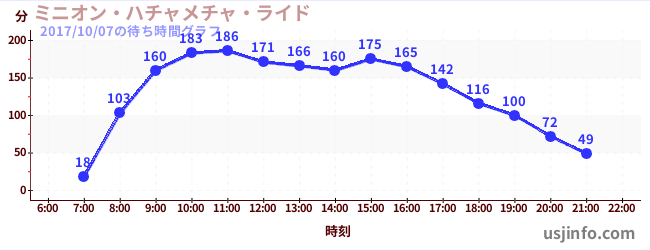 • ミニオン・ハチャメチャ・ライド$B$N(B2017年10月07日の待ち時間