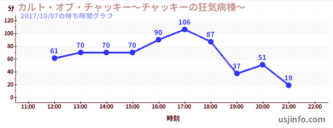• カルト・オブ・チャッキー~チャッキーの狂気病棟~$B$N(B2017年10月07日の待ち時間