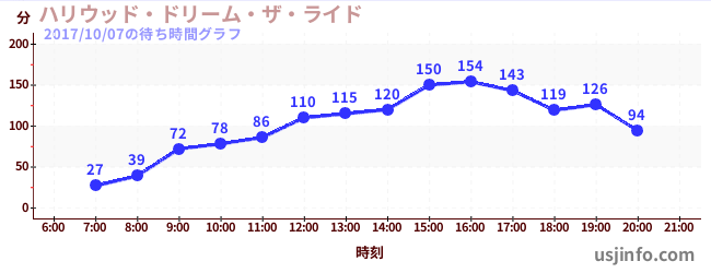• ハリウッド・ドリーム・ザ・ライド$B$N(B2017年10月07日の待ち時間