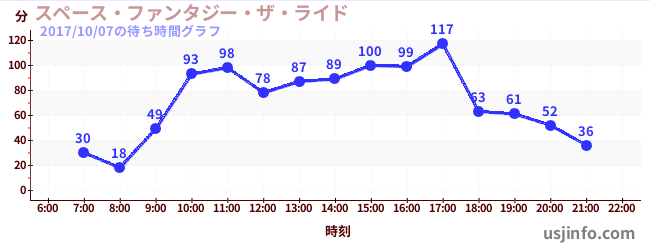 • スペース・ファンタジー・ザ・ライド$B$N(B2017年10月07日の待ち時間