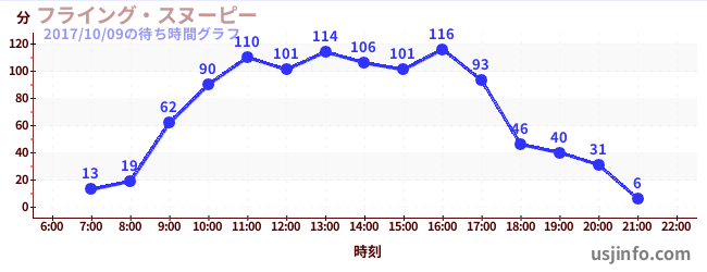 • フライング・スヌーピー$B$N(B2017年10月09日の待ち時間