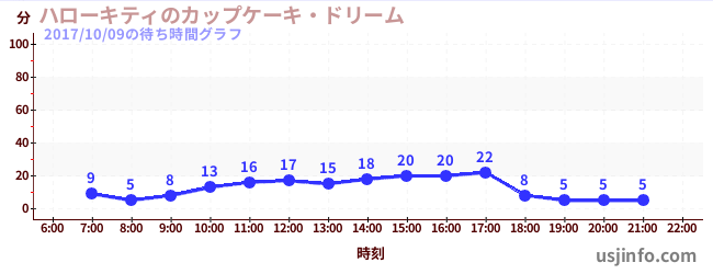 • ハローキティのカップケーキ・ドリーム$B$N(B2017年10月09日の待ち時間