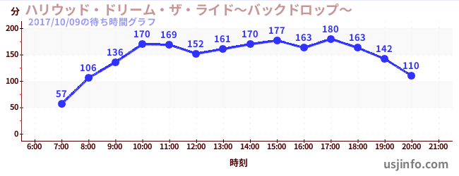 • ハリウッド・ドリーム・ザ・ライド〜バックドロップ〜$B$N(B2017年10月09日の待ち時間