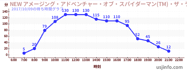 • NEW アメージング・アドベンチャー・オブ・スパイダーマン(TM)・ザ・ライド 4K3D$B$N(B2017年10月09日の待ち時間