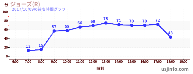 • ジョーズ(R)$B$N(B2017年10月09日の待ち時間