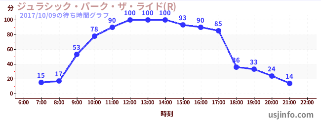 • ジュラシック・パーク・ザ・ライド(R)$B$N(B2017年10月09日の待ち時間