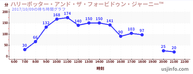 • ハリーポッター・アンド・ザ・フォービドゥン・ジャーニー™$B$N(B2017年10月09日の待ち時間