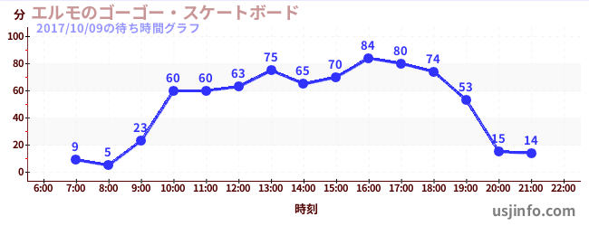 • エルモのゴーゴー・スケートボード$B$N(B2017年10月09日の待ち時間