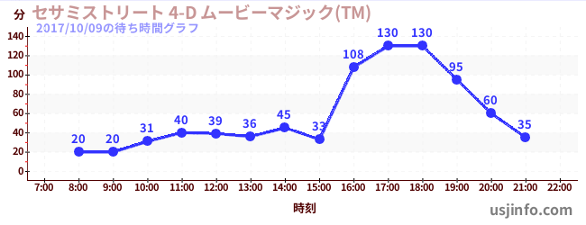 • セサミストリート 4-D ムービーマジック(TM)$B$N(B2017年10月09日の待ち時間
