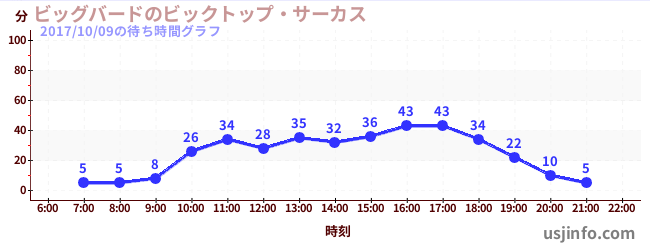 • ビッグバードのビックトップ・サーカス$B$N(B2017年10月09日の待ち時間