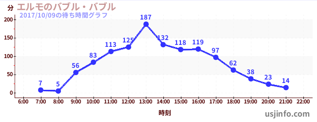 • エルモのバブル・バブル$B$N(B2017年10月09日の待ち時間