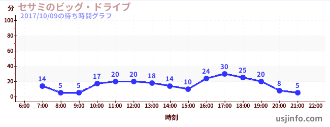 • セサミのビッグ・ドライブ$B$N(B2017年10月09日の待ち時間