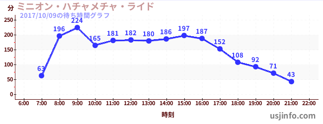 • ミニオン・ハチャメチャ・ライド$B$N(B2017年10月09日の待ち時間