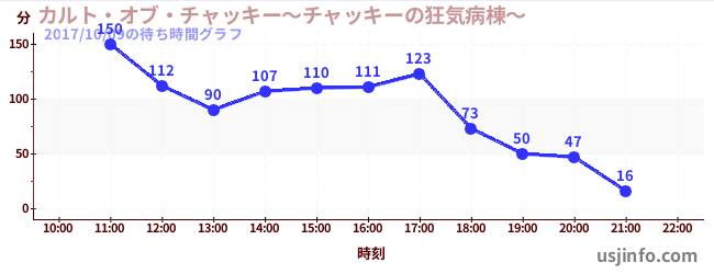 • カルト・オブ・チャッキー~チャッキーの狂気病棟~$B$N(B2017年10月09日の待ち時間