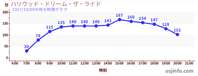 • ハリウッド・ドリーム・ザ・ライド$B$N(B2017年10月09日の待ち時間