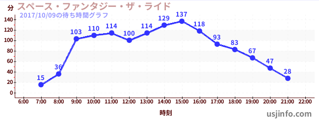 • スペース・ファンタジー・ザ・ライド$B$N(B2017年10月09日の待ち時間