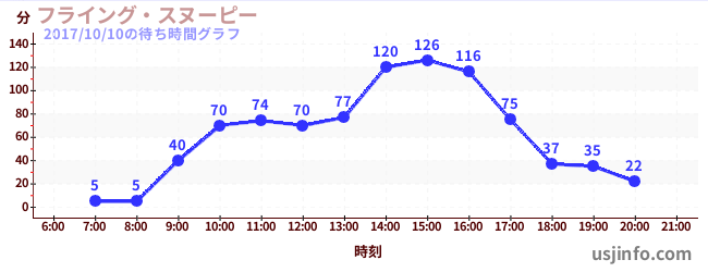 • フライング・スヌーピー$B$N(B2017年10月10日の待ち時間