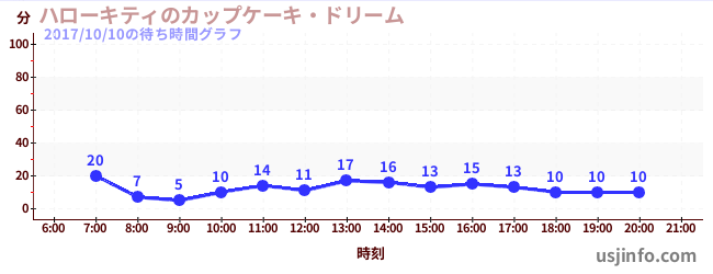 • ハローキティのカップケーキ・ドリーム$B$N(B2017年10月10日の待ち時間