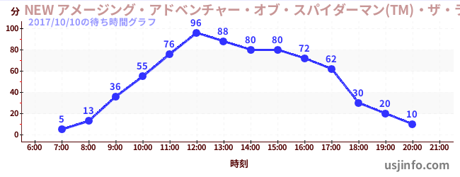 • NEW アメージング・アドベンチャー・オブ・スパイダーマン(TM)・ザ・ライド 4K3D$B$N(B2017年10月10日の待ち時間