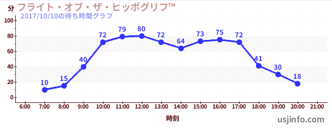 • フライト・オブ・ザ・ヒッポグリフ™$B$N(B2017年10月10日の待ち時間