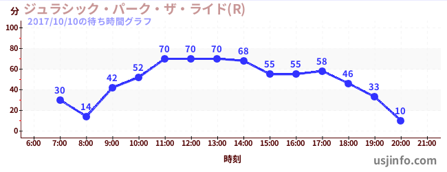 • ジュラシック・パーク・ザ・ライド(R)$B$N(B2017年10月10日の待ち時間