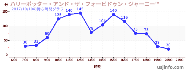 • ハリーポッター・アンド・ザ・フォービドゥン・ジャーニー™$B$N(B2017年10月10日の待ち時間