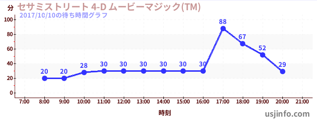 • セサミストリート 4-D ムービーマジック(TM)$B$N(B2017年10月10日の待ち時間