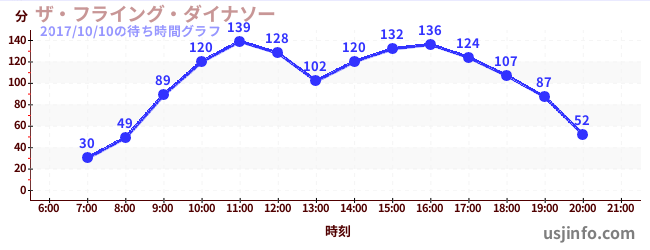 • ザ・フライング・ダイナソー$B$N(B2017年10月10日の待ち時間