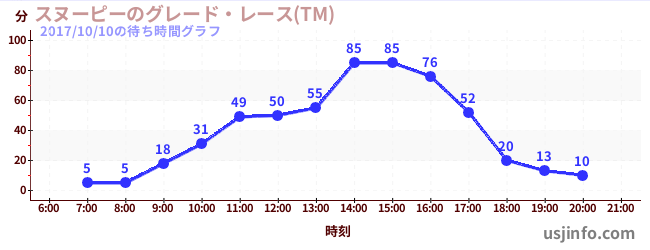 • スヌーピーのグレード・レース(TM)$B$N(B2017年10月10日の待ち時間