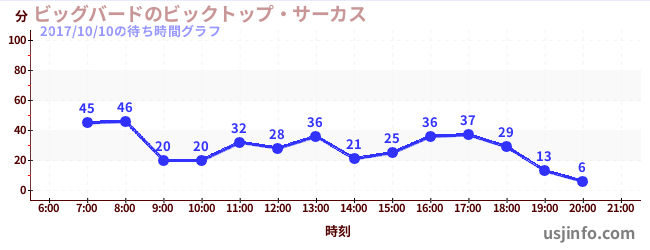 • ビッグバードのビックトップ・サーカス$B$N(B2017年10月10日の待ち時間