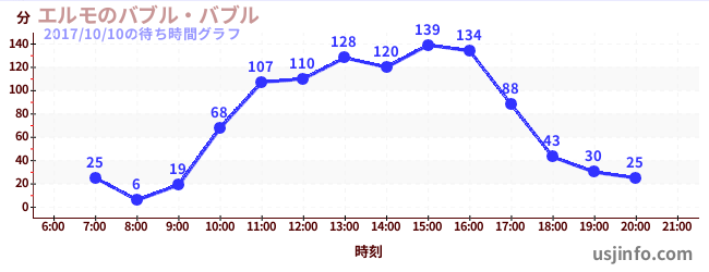 • エルモのバブル・バブル$B$N(B2017年10月10日の待ち時間