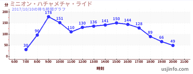 • ミニオン・ハチャメチャ・ライド$B$N(B2017年10月10日の待ち時間